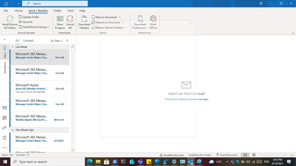 - Check out your Outlook client to perform “Update Folder” it may prompt a window for authentication.