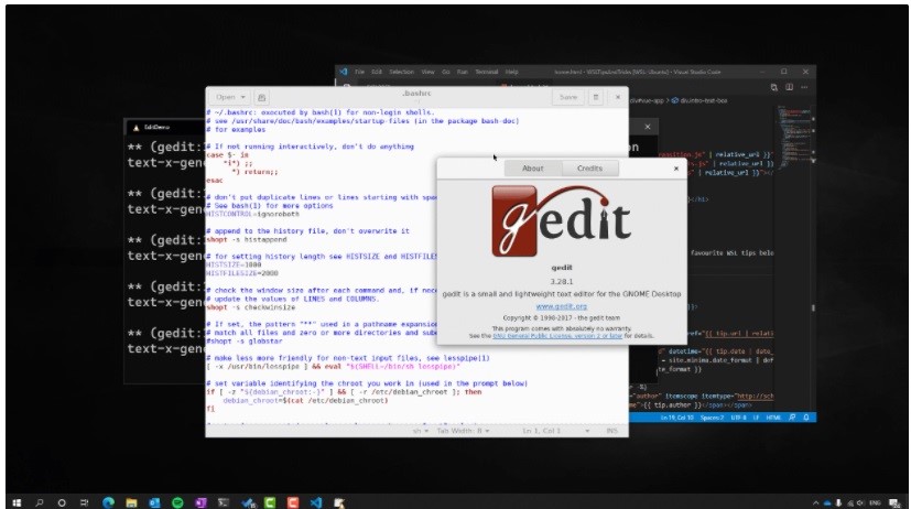 The Windows Subsystem for Linux now includes a first preview of support for GUI application. Means you can now run GUI editors, tools, and applications, to develop, test, build and run your Linux apps!