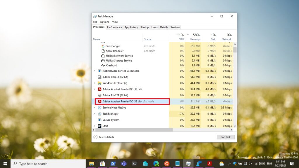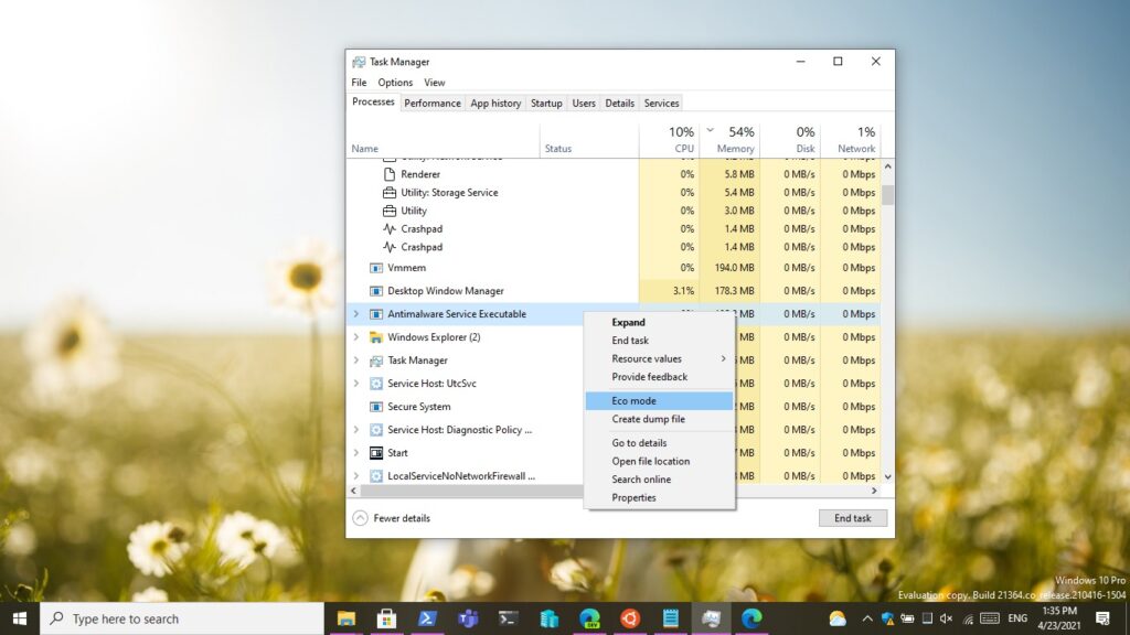 Eco mode in Task Manager