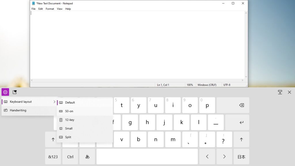 You can switch to 50-on layout from the Touch Keyboard settings > 50-on. It also provides alphabet and symbol views newly designed specifically for the layout. You may notice some known issues where inserting a full-width space using Shift key doesn’t work and typing some characters shows garbled suggestion candidates. Microsoft aware of that and working to addressing it.