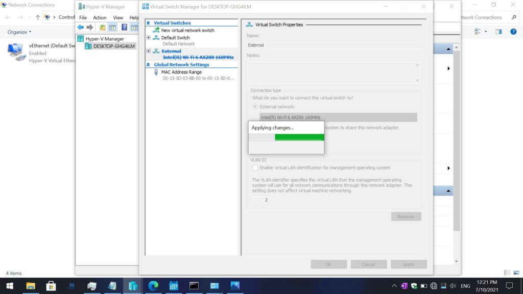 Have you had the same issues with me? When you have turned on Hyper-V feature and setup with one or multiple VM instance on your laptop, then when you tried to access webpage via browser or download anything it just very slow than it normally do. Well, more specifically if you have created an external virtual switch in order to bind your host’s physical network adapter to the VM instance to access the Internet. (see the below screenshot that created another network adapter named “vEthernet(External) and Bridge”).