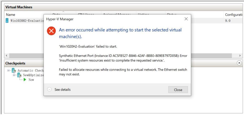 One more thing, please do not forget to edit the effected VM instances which to change the virtual switch to “Private” or just “Not connected” in case you cannot start the VM instance and received with scare error message.