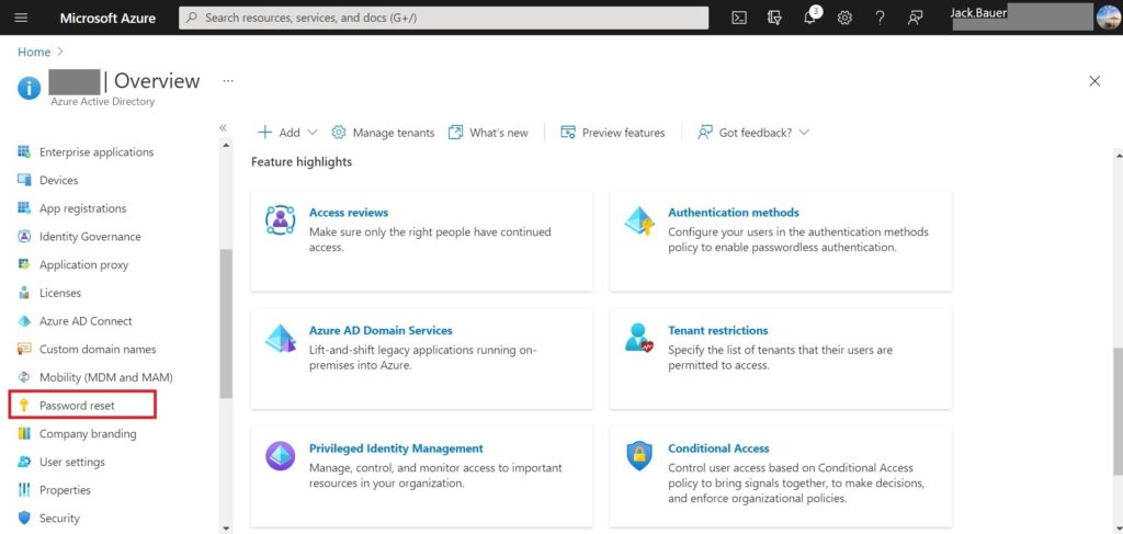 3. Go back to Azure Active Directory > Click “Password reset” from left side menu.