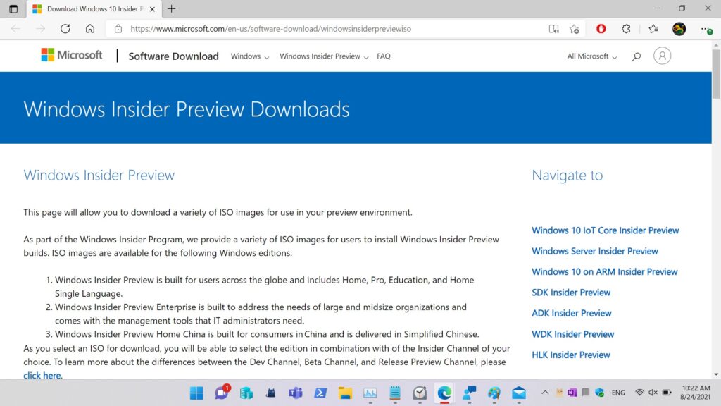 As I’ve mentioned on my last post regarding Windows Insider Preview Build 22000.160, Microsoft finally released the ISO of Windows 11 for Insiders to be able to download. You can using the ISO to perform a clean installation or in-place upgrade. This really good if your current test computer having issues with running Windows 11. You may follow below steps to download the ISOs.