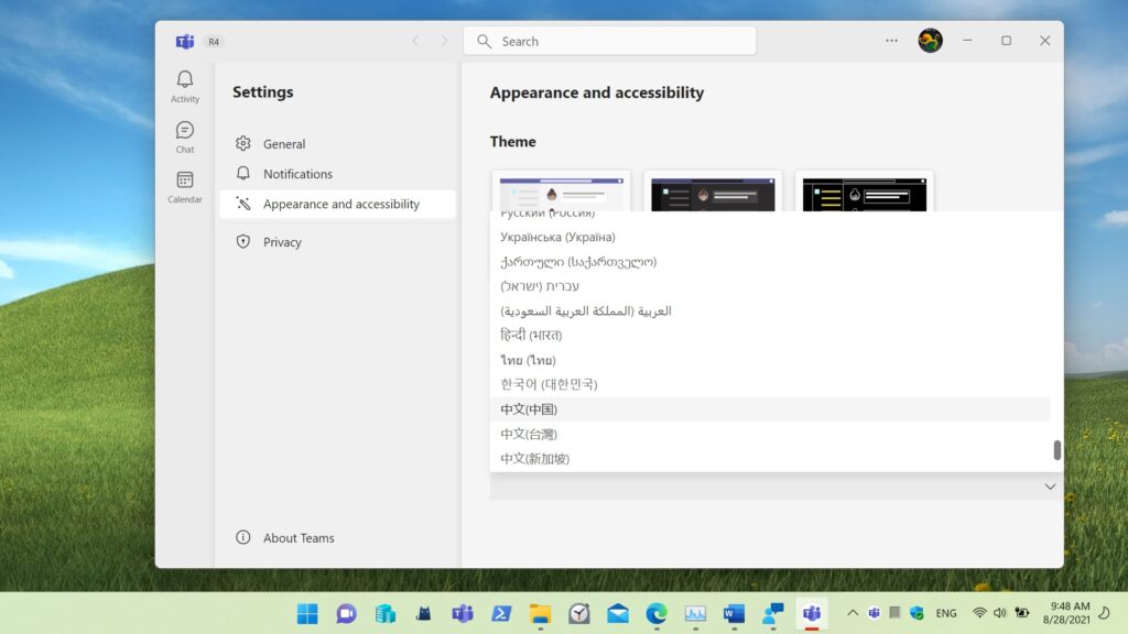 - Chat with Microsoft Teams now supports more languages. With this Build you can set language to the following: Albanian, Arabic, Azerbaijani, Basque, Bulgarian, Catalan, Chinese (Simplified), Chinese (Traditional), Croatian, Czech, Danish, Dutch, English (UK), English US, Estonian, Filipino, Finnish, French, French (Canada), Galician, Georgian, German, Greek, Hebrew, Hindi, Hungarian, Icelandic, Indonesian, Italian, Japanese, Kazakh, Korean, Latvian, Lithuanian, Macedonian, Norwegian (Bokmal), Norwegian (Nynorsk), Polish, Portuguese (Brazil), Portuguese (Portugal), Romanian, Russian, Serbian Latin, Slovak, Slovenian, Spanish (Spain), Spanish (Mexico), Swedish, Thai, Turkish, Ukrainian, Valencian, Vietnamese, and Welsh. Also, you can set the OS and Chat with Microsoft Teams display language separately.