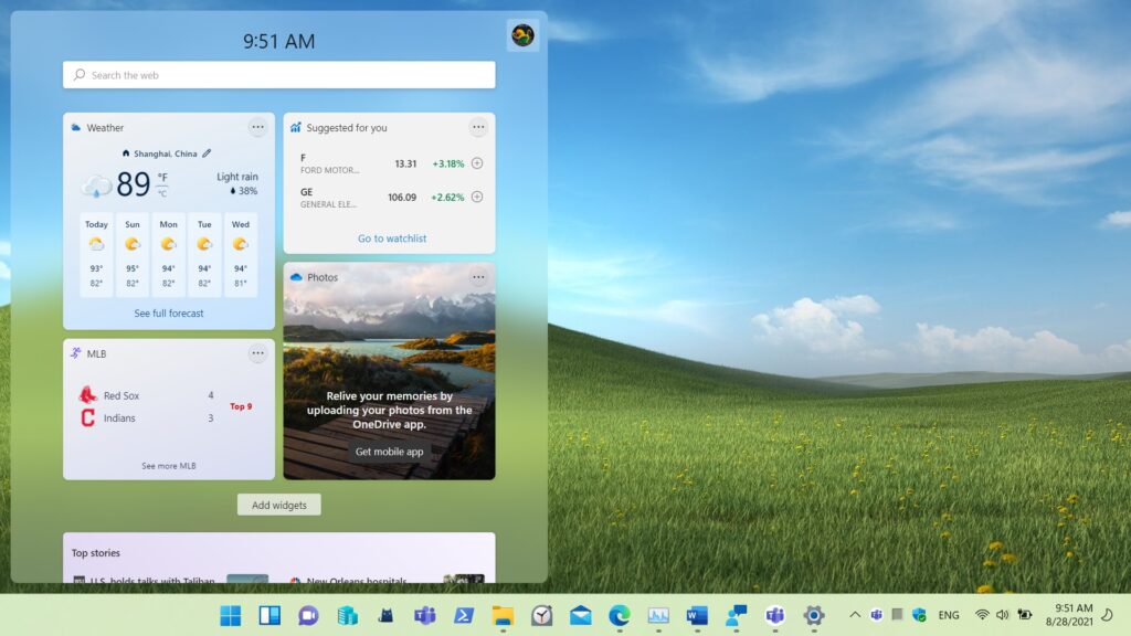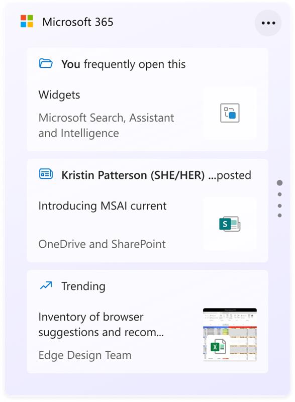 - New Microsoft 365 widget available now. This new widget only available if you are signed in with your AAD account on PC that running Windows 11, which brings relevant documents, news and meeting recordings (with more to come…) to enterprise users. As Microsoft hope this will help users stay on top of their work and find the information they need with ease. To adding this widget open widgets > then click the “Add Widgets” button > select “Microsoft 365 Widget”.