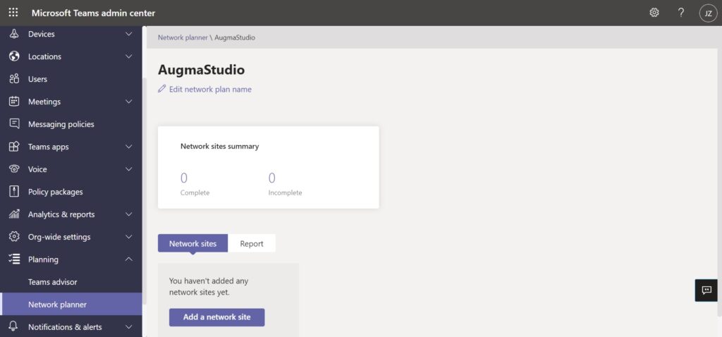 - Go back to Network Planner > click the “AugmaStudio” network plan > click “add a network site”.