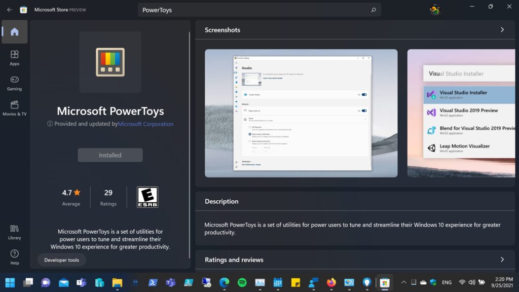 Microsoft PowerToys available in Microsoft Store