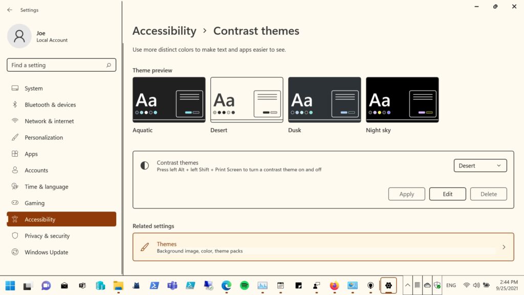 - Made some small adjustments to the contrast theme colors based on feedback, including making hyperlinks a little more distinct on hover when using the desert theme.