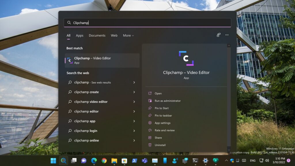To start creating your own videos, searching “Clipchamp” in the Start menu on your PC.