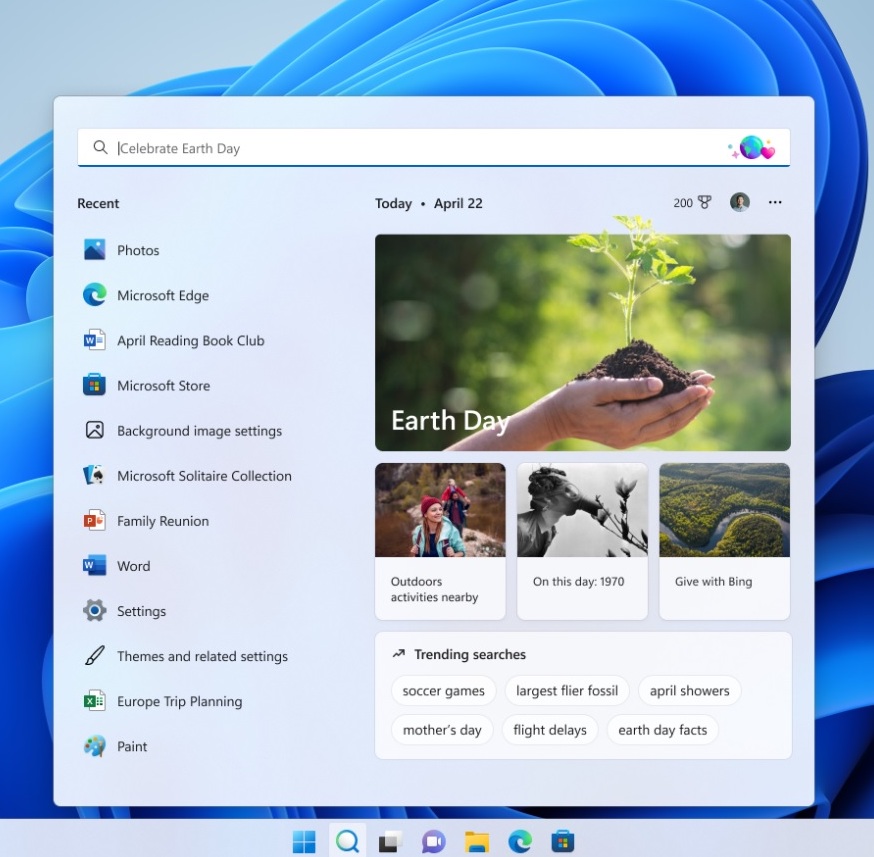 Starting early next week, Microsoft will begin rolling out an update for Search in Windows 11 that highlights interesting moments in time. Search is right there on your taskbar – your window to discover what’s trending online, in the world, and in your organization. Of course, you can still type to start searching for your apps, files, settings, and quick answers on the web.