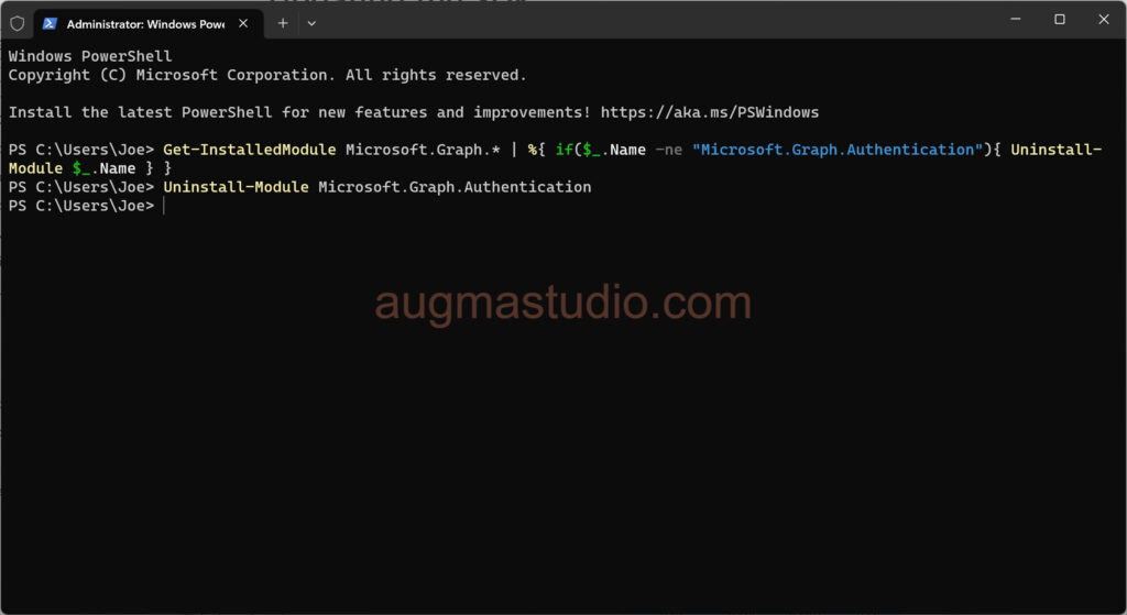 Uninstall-Module Microsoft.Graph.Authentication”.