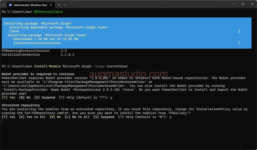 3.Enter “Install-Module Microsoft.Graph -Scope CurrentUser” > press enter > “Y”.