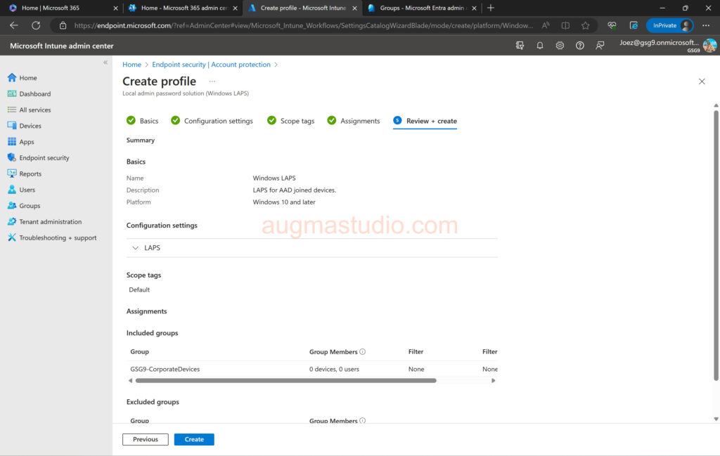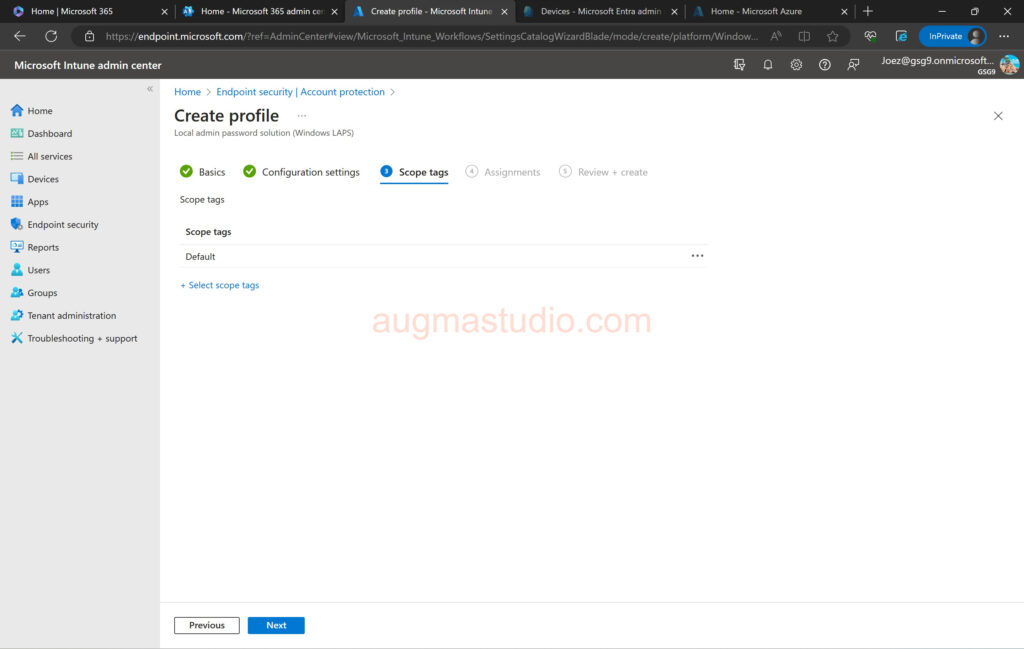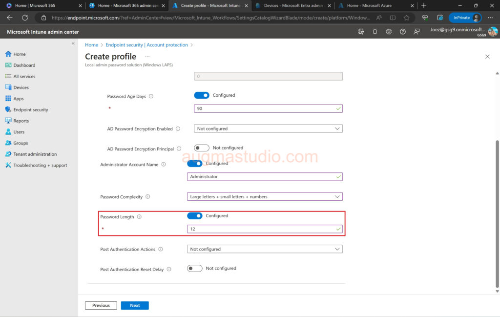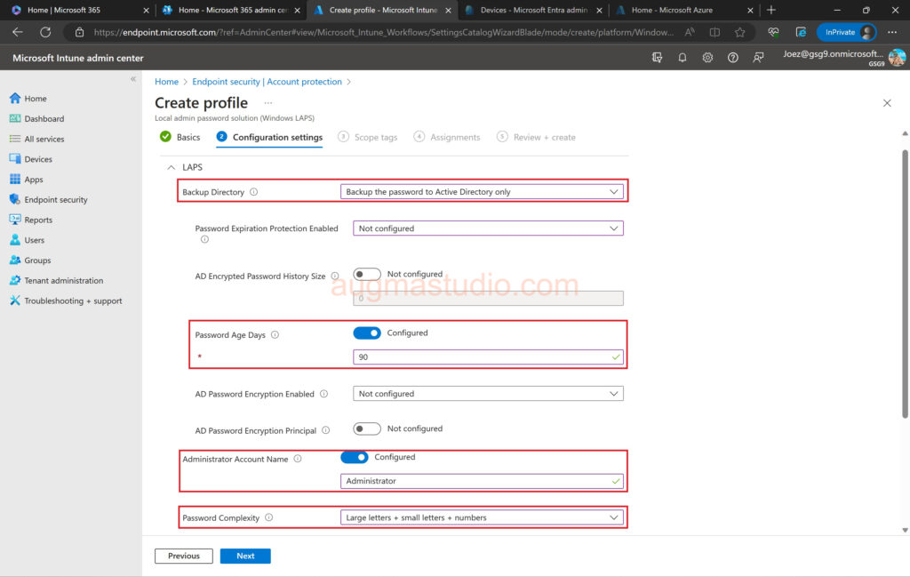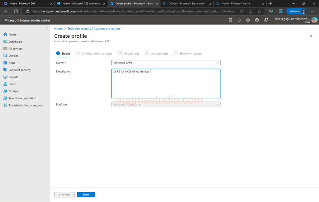 4.Sign-in to Microsoft Intune admin center (https://endpoint.microsoft.com) > Endpoint security > Account protection > Create Policy.