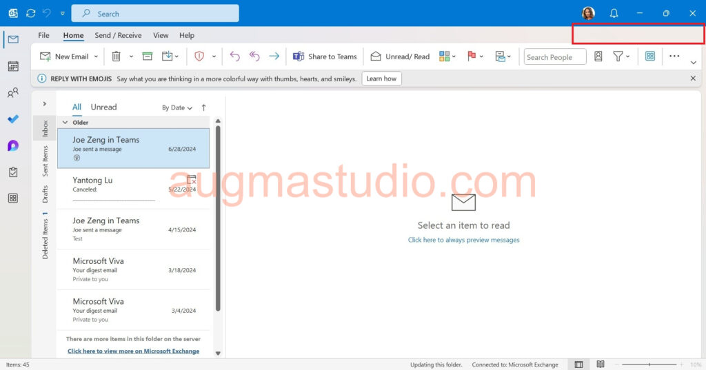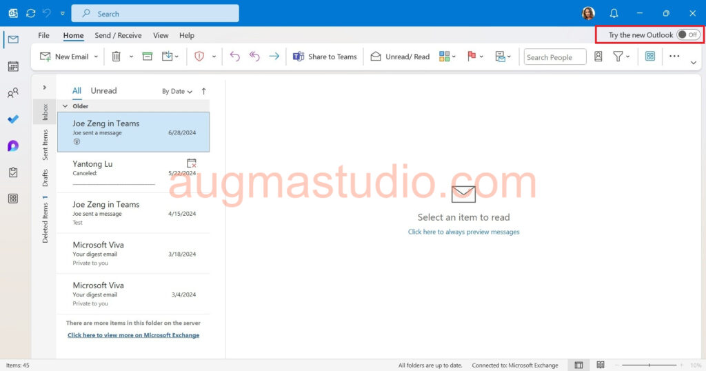 6. Re-launch Classic Outlook client to verify. You should not see the “Try the New Outlook” option on the upper right corner.