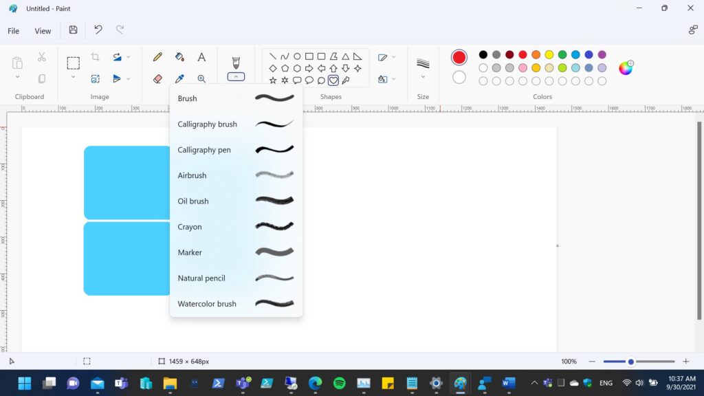 As the Microsoft point out that the most prominent change to MS Paint is the newly simplified toolbar with updated icon designs, a rounded color palette, and a new set of drop-down menus for tools such as brushes, stroke size, and flip/rotate controls. See below screenshot.